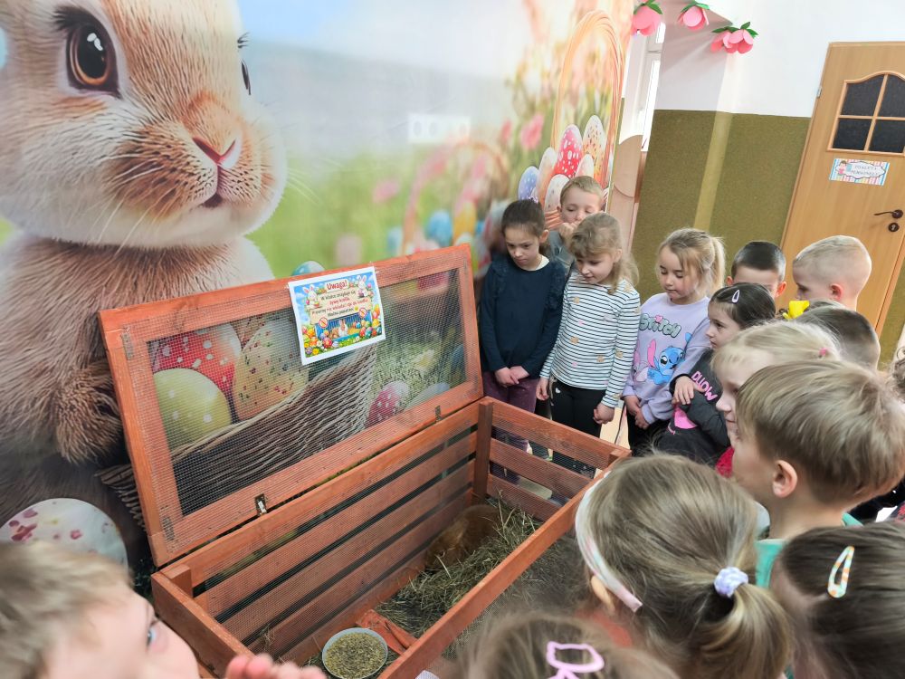 W naszym przedszkolu gościliśmy wyjątkowego gościa – żywego królika rasy nowozelandzkiej (samiczkę). Dzieci z ogromnym zainteresowaniem poznawały jego zwyczaje, uczyły się, jak należy się nim opiekować oraz jak ważna jest troska o zwierzęta. Przedszkolaki samodzielnie karmiły królika oraz dbały o jego komfort.
