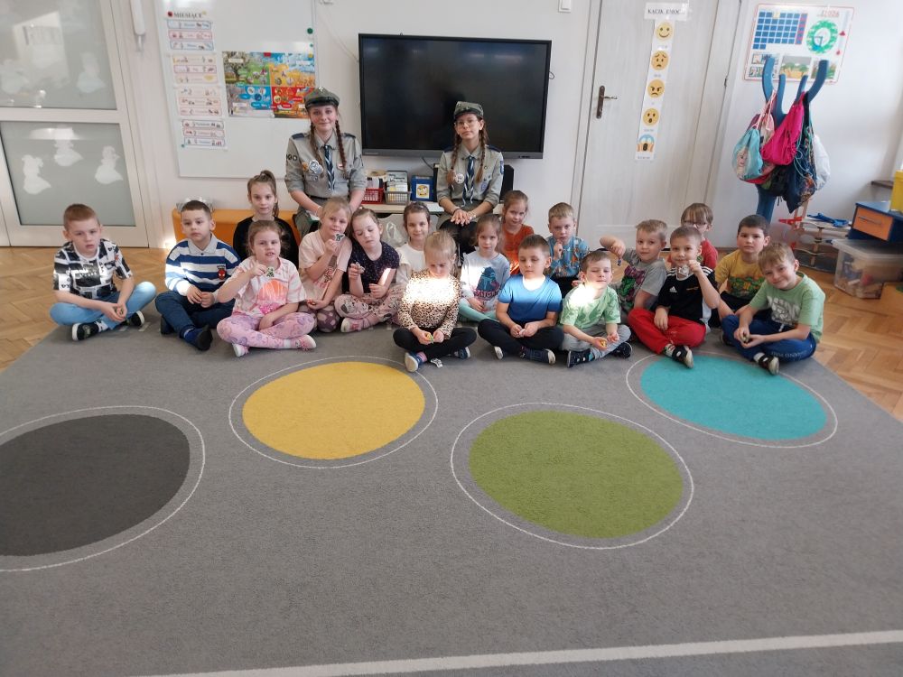Dzisiaj do naszego przedszkola zawitały harcerki , uczennice szkół średnich - Martyna i Wiktoria.Obie przeprowadziły krótkie spotkania z dziećmi z najstarszych grup przedszkolnych.pod hasłem: ,,Przyjaciel przyrody'' z projektu w ramach Olimpiady ,,Zwolnieni z teorii''. Harcerki rozmawiały z przedszkolakami o tym: Co to jest przyroda?, Jak zostać przyjacielem przyrody?, Jak segregować śmieci?.