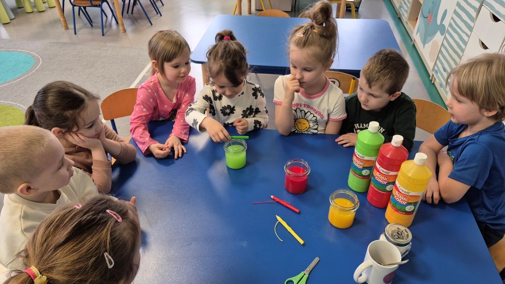 Eksperyment wzbudził ogromne zainteresowanie i radość. Dzieci z zaciekawieniem obserwowały zmiany, zadawały pytania i dzieliły się swoimi spostrzeżeniami. Była to doskonała okazja do rozwijania ciekawości świata, umiejętności obserwacji oraz nauki poprzez zabawę.